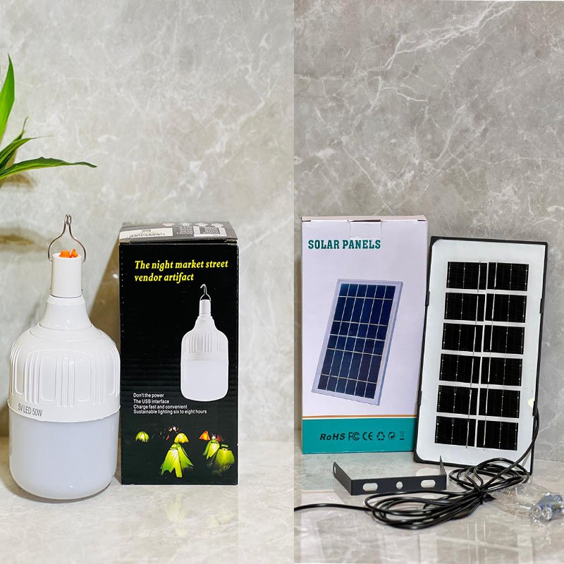 لمبة اضاءة مدور 50 واط شحن USB + خلية شمسية مع بطاريات K305/2 =ض9