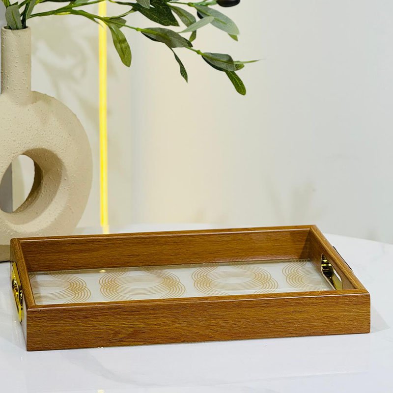 صينية خشب بامبو 32*22سم وجه زجاج بيدين K151/1 =ض9