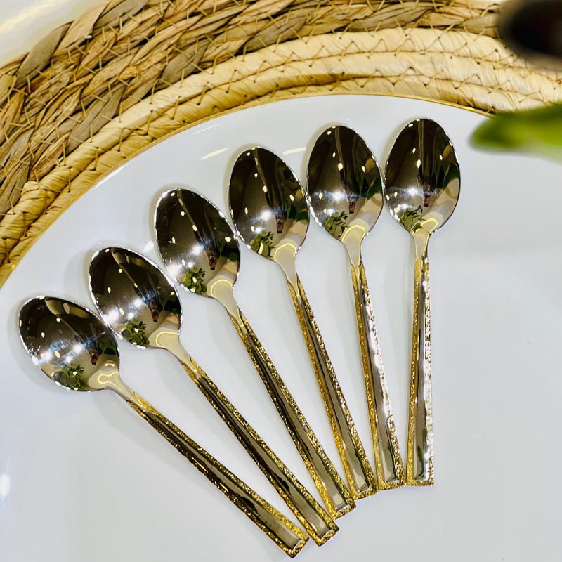 طقم معالق قرفة/6 ستانلس ستيل يد حيف ذهبي K123/2 =ض9