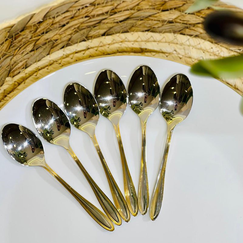 طقم معالق قرفة/6 ستانلس ستيل يد سنبلة ذهبي K123/3 =ض9