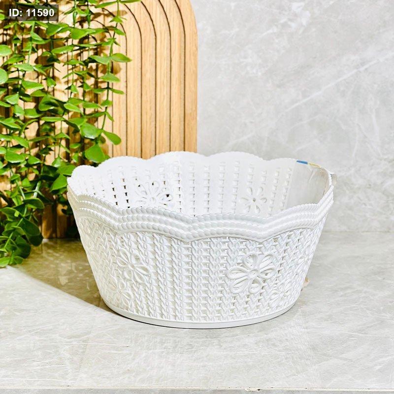 طقم سلة /3 بلاستك ابيض مدور مخرم ورد حيف معرج K177/6 =ض10م