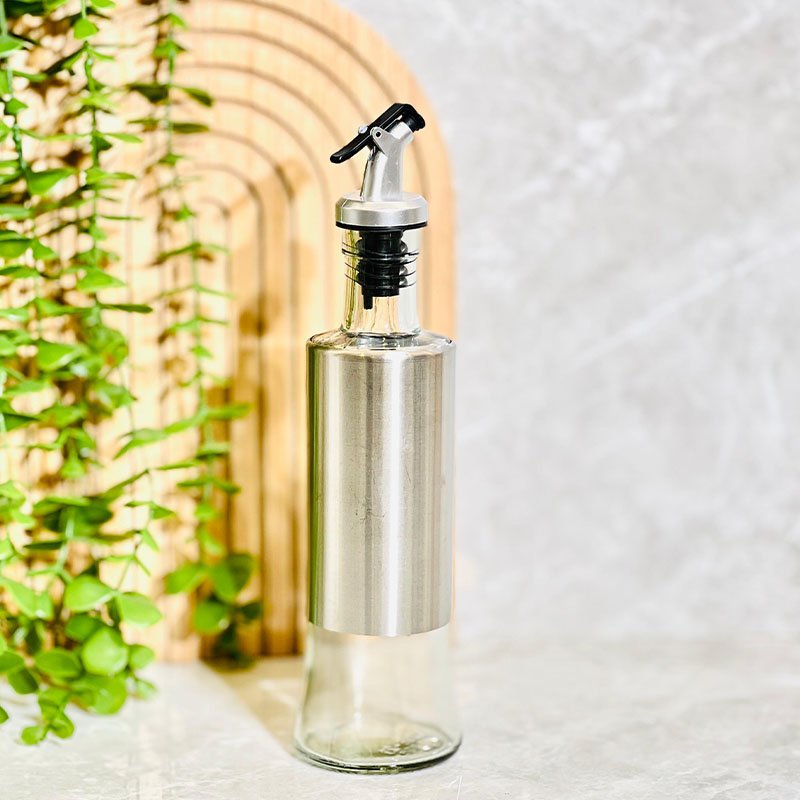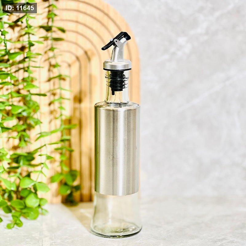 قنينة زيت زجاج مدور 350مل خصر وغطا ستانلس ضغط K135/12 =ض10م