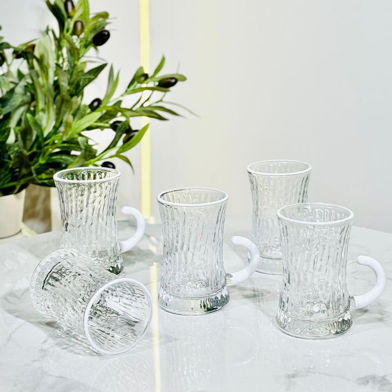 طقم كاسة شاي/12 زجاج سادة مثلج K318/7 يد قوس ابيض =VGR1