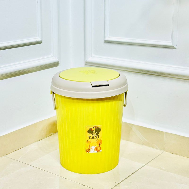 سلة مهملات مدور بلاستك ملون K160/3 غطا كبس بيدين =VGR2
