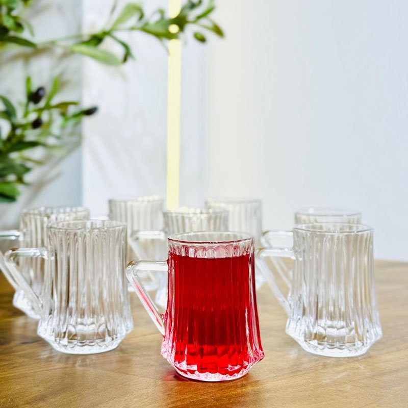طقم كاسة شاي بيد /12 زجاج سادة CLEAR محزز KX2175-C ++ج5