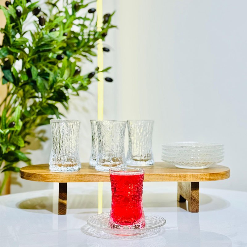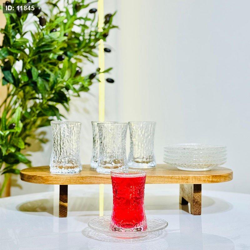 طقم كاسة شاي استكانة 6/6 زجاج سادة CLEAR مشجر H90 ++ج5