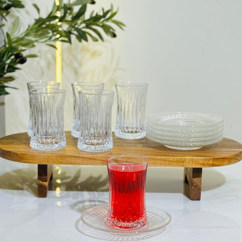 طقم كاسة شاي استكانة 6/6 زجاج سادة CLEAR محزز H90 ++ج5