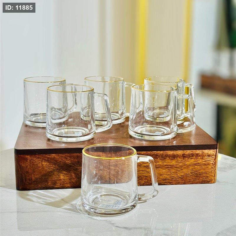 طقم كاسة شاي/6 زجاج سادة 170مل ملس K117/5 حيف ذهبي =VGR3