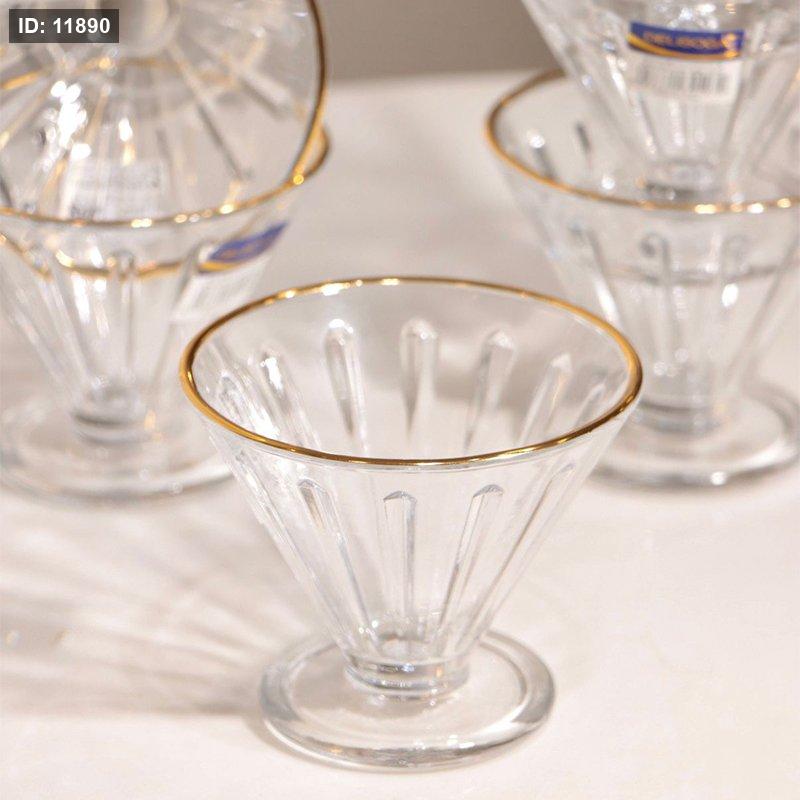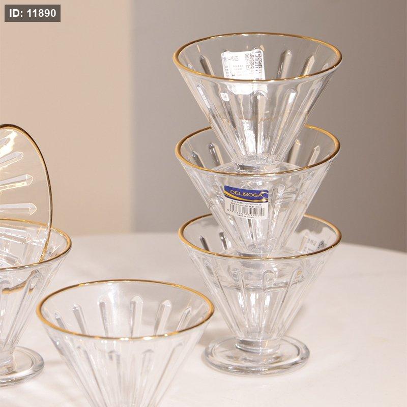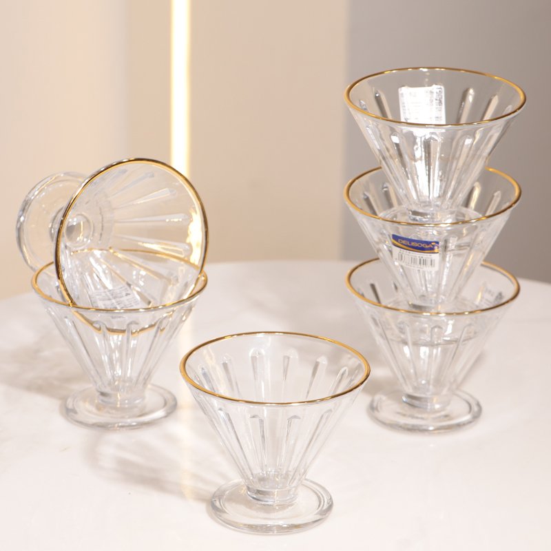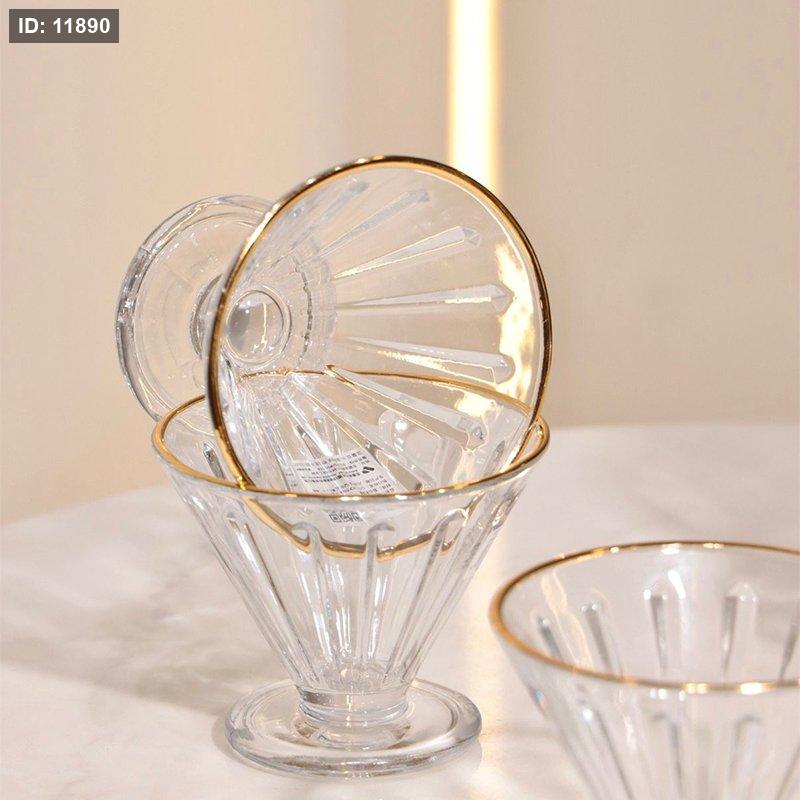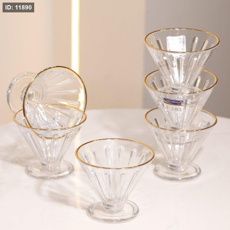طقم كاسة بوظة قرطوس/6 زجاج سادة 165مل مبزر K117/10 حيف ذهبي =VGR3