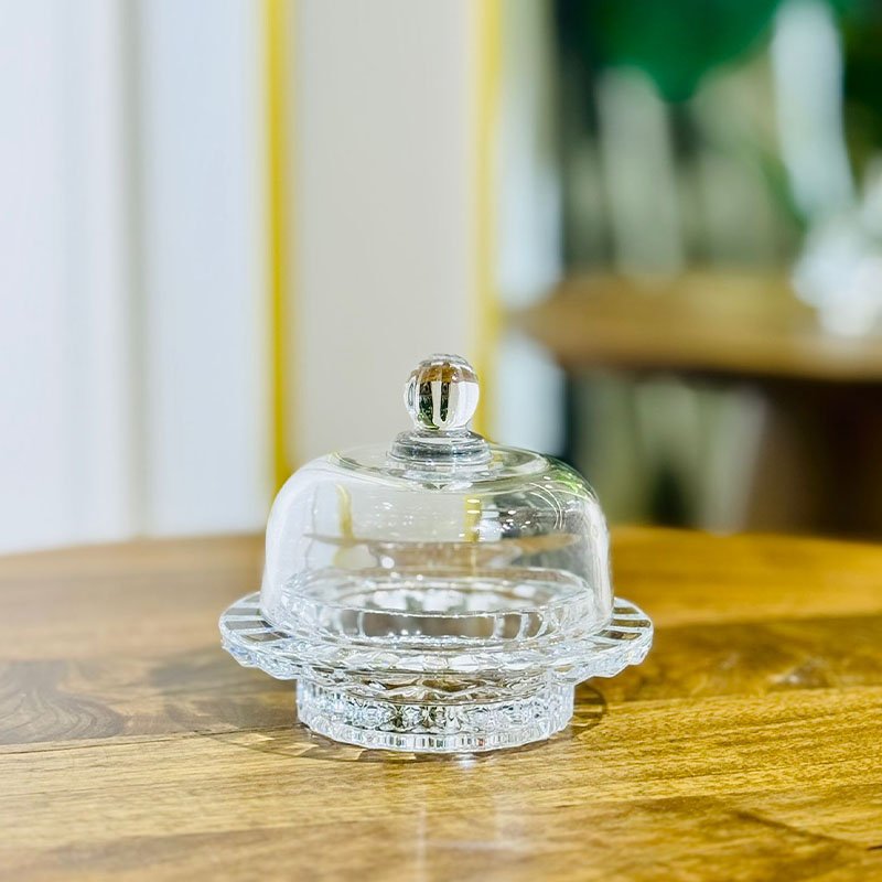 مضيفة سكاكر مدور 12سم كرستال محزز K117/14 بغطا =VGR3