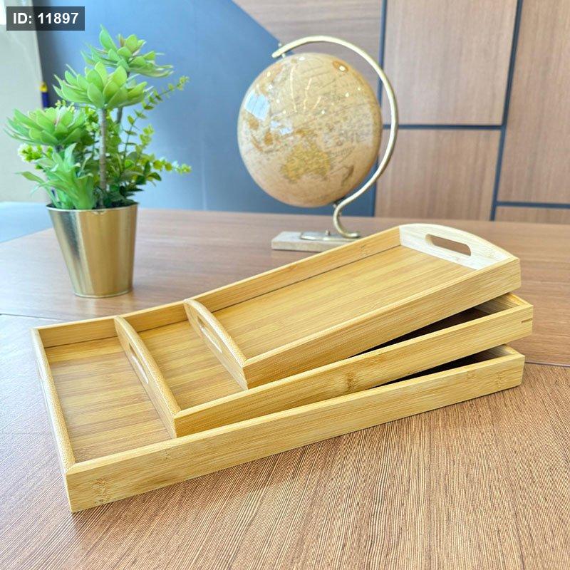 طقم صواني/3 خشب بامبو فاتح مستطيل K141/4 مستطيل بيدين =VGR3