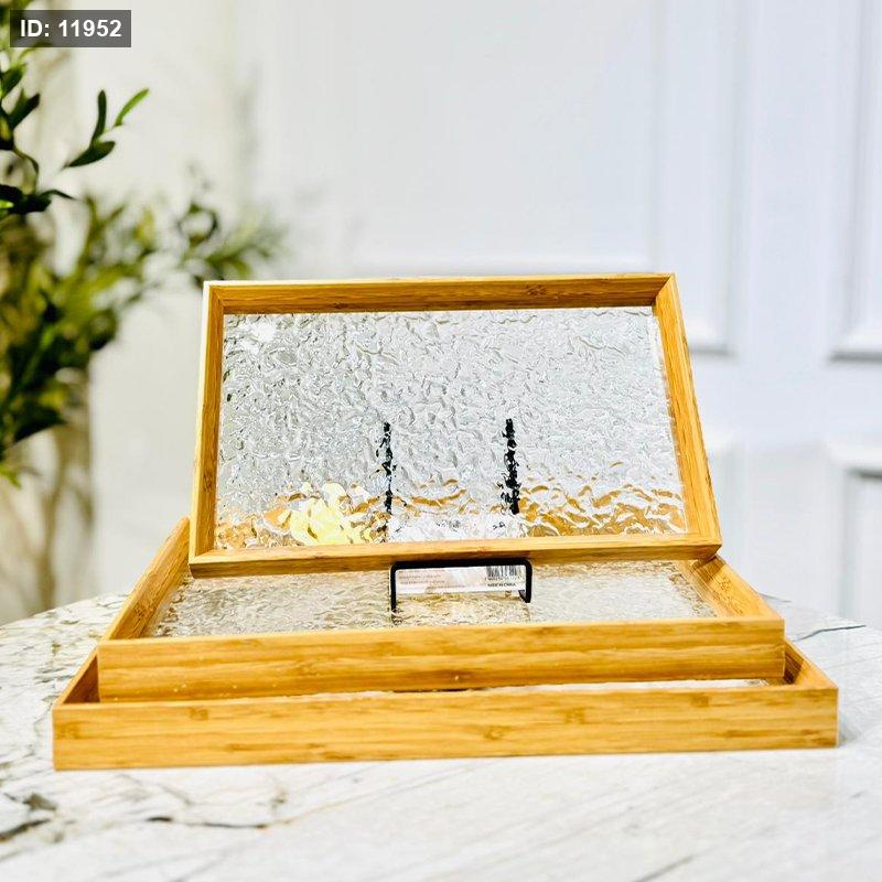 طقم صواني /3 بلاستك خشبي مستطيل K134/1 وجه اكرلك مثلج =VGR4