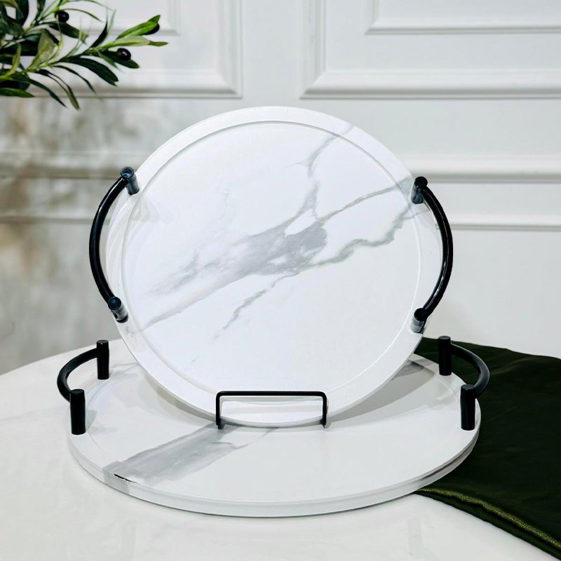 طقم صواني/2 مدور K134/4 خشب ماربل ابيض بيدين مقبض اسود =VGR4