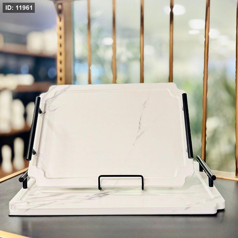 طقم صواني/2 مستطيل K134/10 خشب ماربل ابيض حيف معرج بيدين مقبض اسود =VGR4