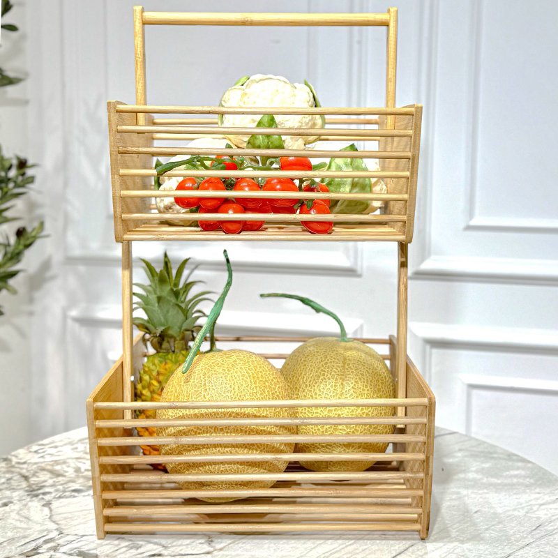 سلة خضار K140/30 خشب بامبو 2 طبقة بيد طويل =VGR4