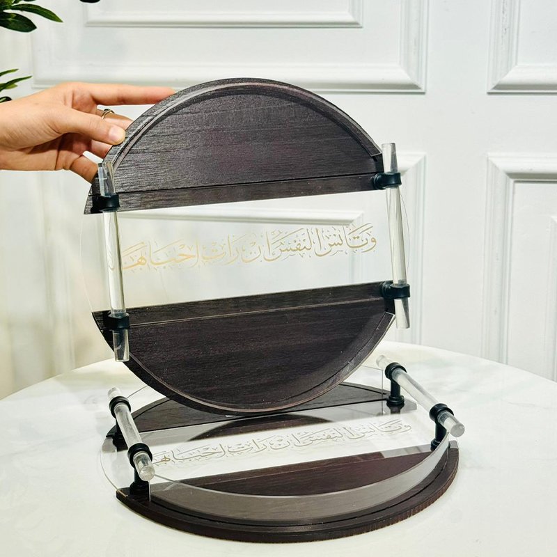 صينية خشب بني محروق مدور K314/2 نصف اكرلك شفاف ت.2 مكتب K341/2 بيدين =VGR4