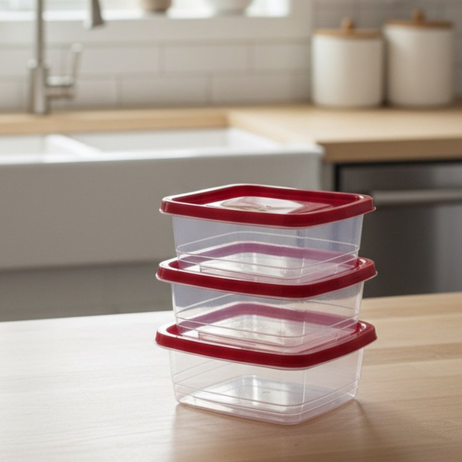 طقم طبروير مستطيل /3 بلاستك شفاف 1.13لتر غطا ملون 3121026 +