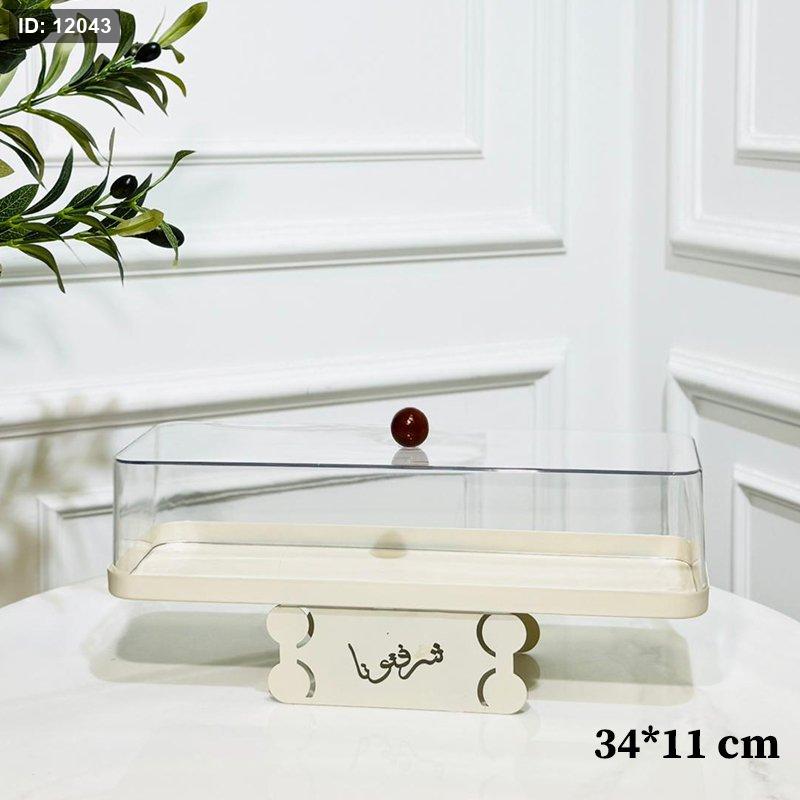 مضيفة كيك مستطيل 34*11سم تنك بيج غطا اكرلك قاعدة محفر شرفتونا K55/3 =ك1