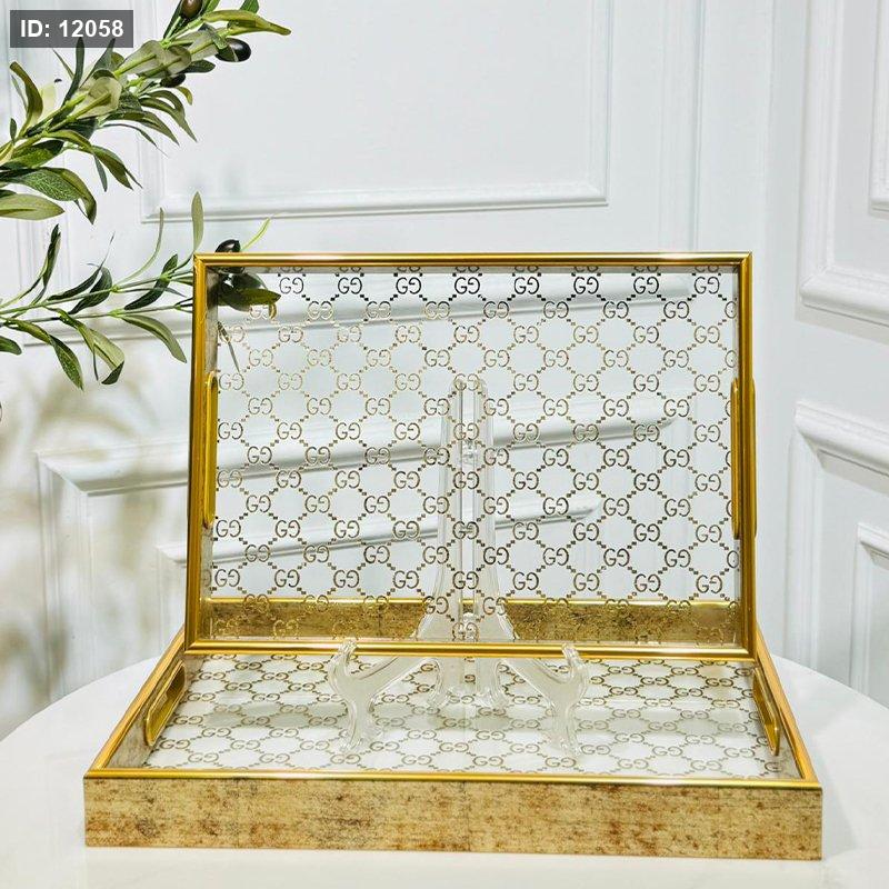 طقم صواني/2 وجة زجاج مرسم مزخرف اطار خشب مذهب K55/18 =ك1