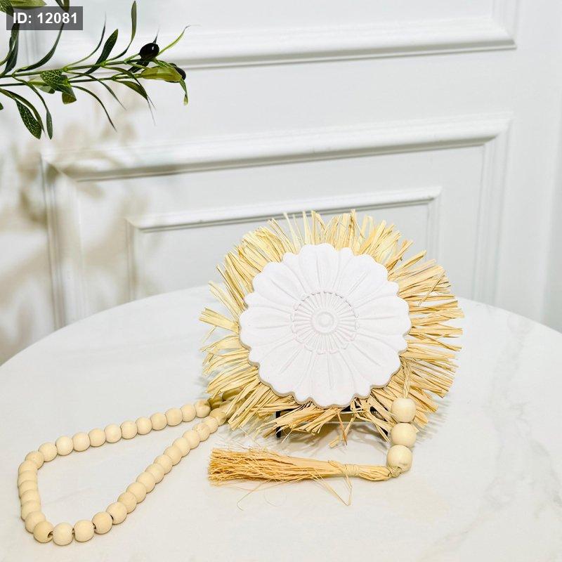 تعليقة باب جبص ورد ابيض مع اطار سبحة خشب K57/9 =ك1