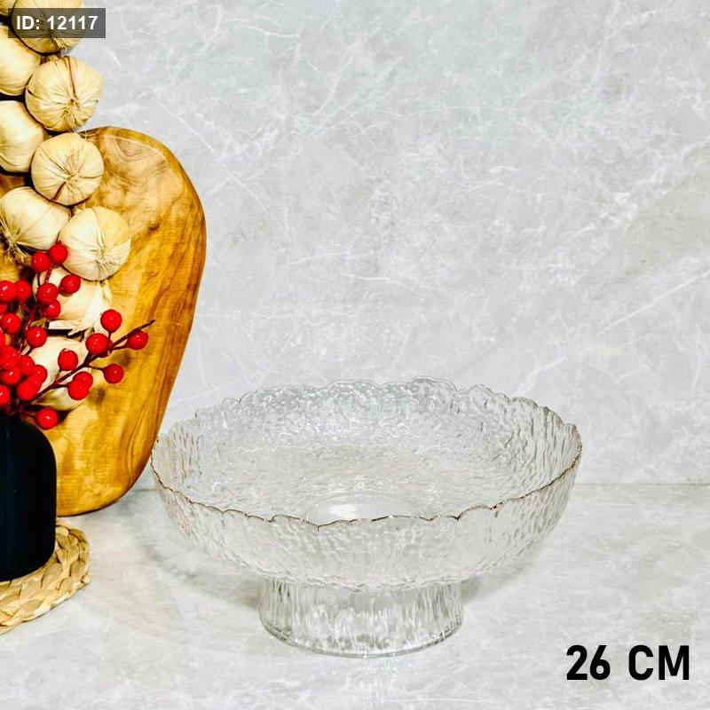 جاط فواكة زجاج مدور مثلج 26سم حيف ذهبي معرج برجل K32/5 =ك3