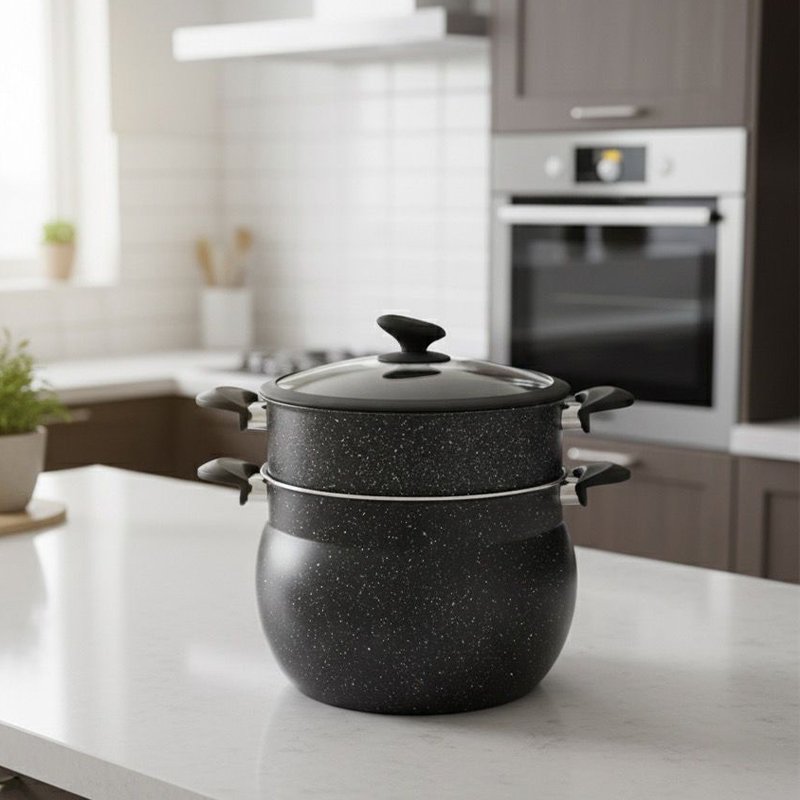 طقم/2 طنجره مفتول جرانيت 26سم غطا زجاج K89/3 =ك3