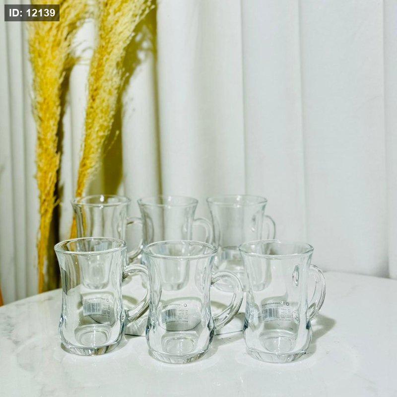 طقم كاسة شاي بخصر/6 زجاج سادة بيد K44/10 =ك3