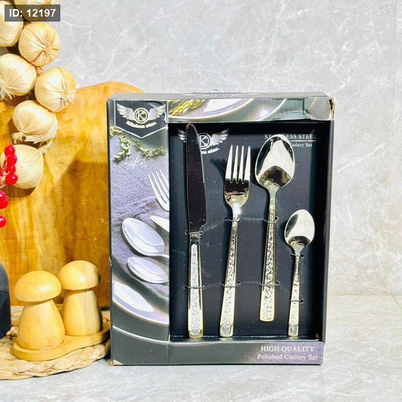 طقم/24 معالق وشوك وسكاكين ستانلس ستيل نقشة مثلج حيف ذهبي K99/2 =ك3