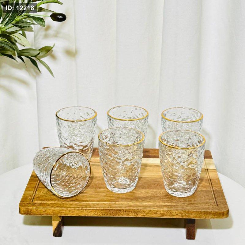 طقم كاسة ماء طويل /6 زجاج سادة 350مل مبزر خلية نحل حيف ذهبي K79/5 =ك2