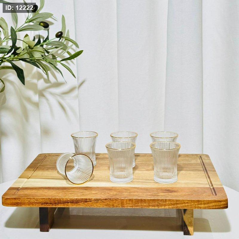طقم كاسة زمزم/6 زجاج سادة محزز حيف ذهبي K79/9 =ك2