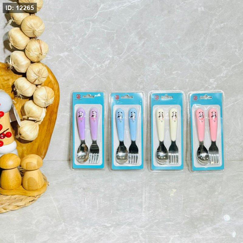 معلقة +شوكة اطفال ستانلس يد بلاستك منحني ملون مرسم باندا K169/7 =ك2