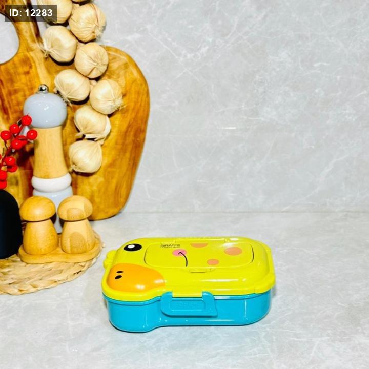 لانش بوكس مستطيل مقطع 2عين مع معلقة وشوكة بلاستك ملون مرسم K155/1 =ك2