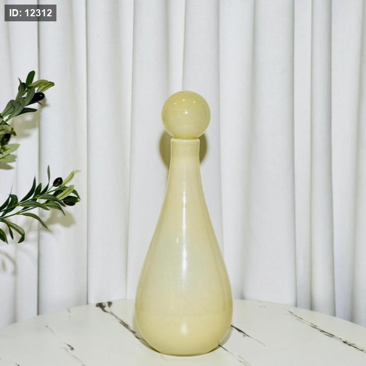 فازة 42 سم بغطا طابة زجاج اصفر مكعبل بعنق K197/6 =ك4
