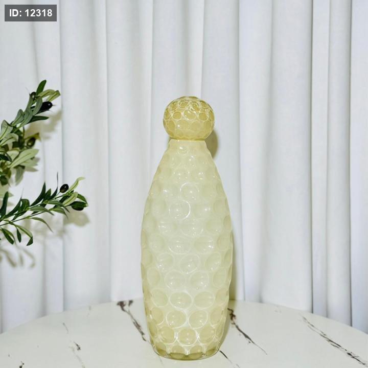 فازة 42سم بغطا طابة زجاج اصفر نقشة اناناس K197/12 =ك4