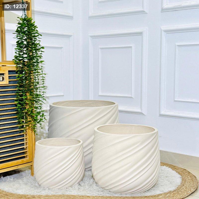 طقم قوار ورد /3 احجام جبص بيج محزز بالعرض K49/3 =ك4