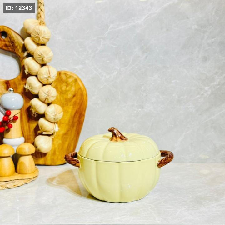 طنجرة بورسلان كريمي 20سم شكل يقطينة K48/1 =ك4