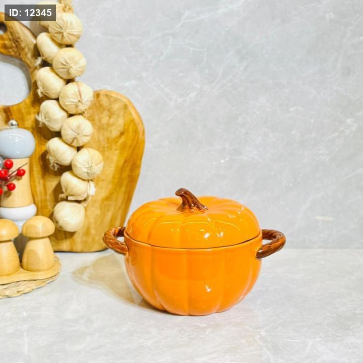 طنجرة بورسلان برتقالي 20سم شكل يقطينة K48/3 =ك4