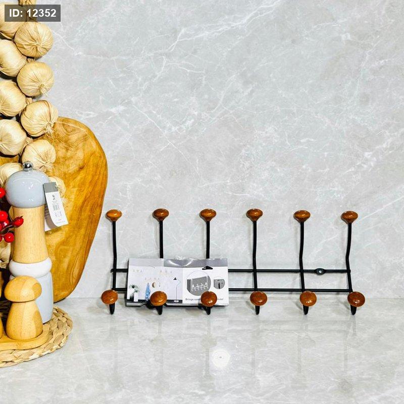 علاقة حائط حديد اسود 6 عين طابة خشب k188/3 =ك4