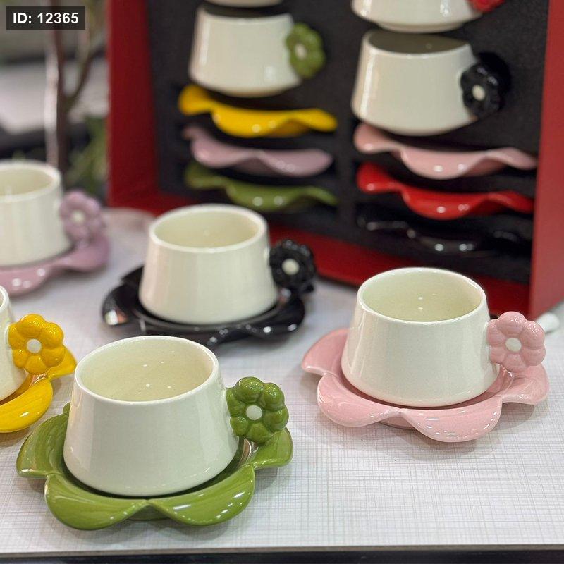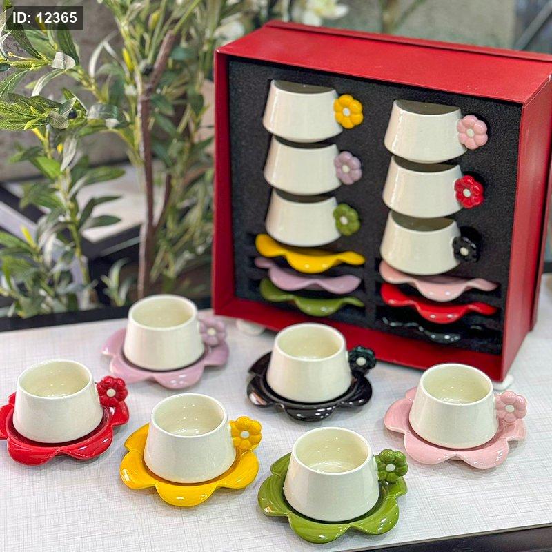 طقم ماغ فناجين6/6 بورسلان ملون متكة ويد وردة K36/7 =ك4
