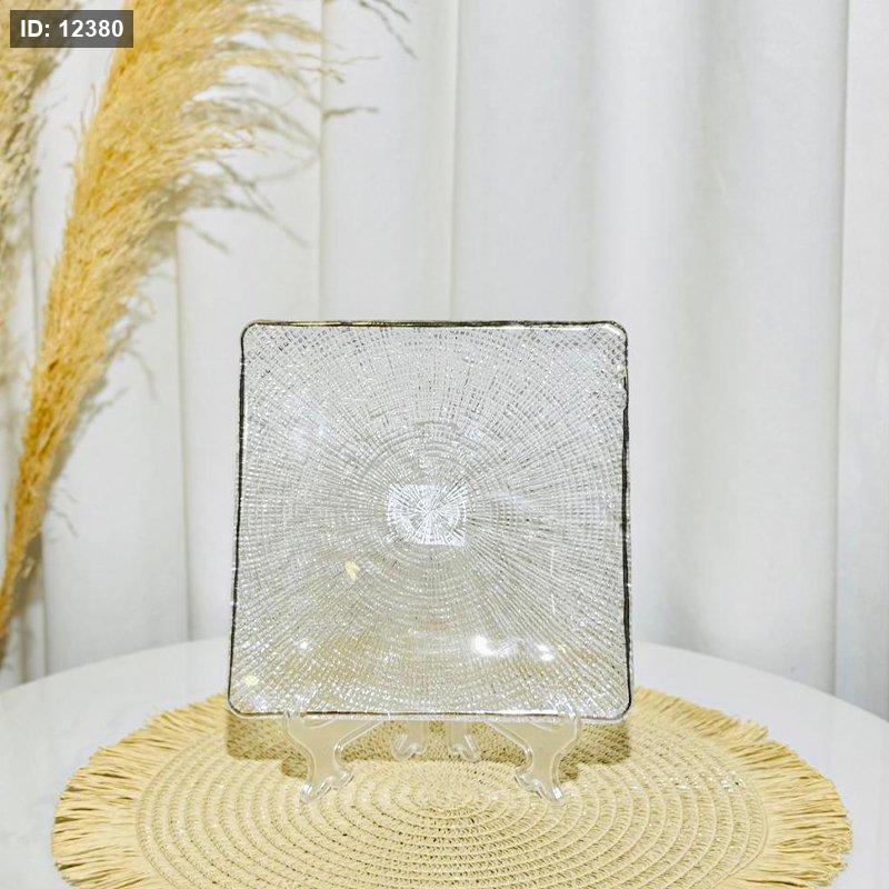 صحن كيك صفح مربع 20سم زجاج مبزر اطار ذهبي K54/22 =ك4