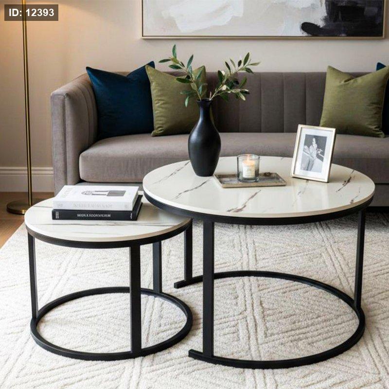 طقم اسكملات مدور/2 خشب ماربل ابيض ارجل حديد اسود K308/2 =ك4