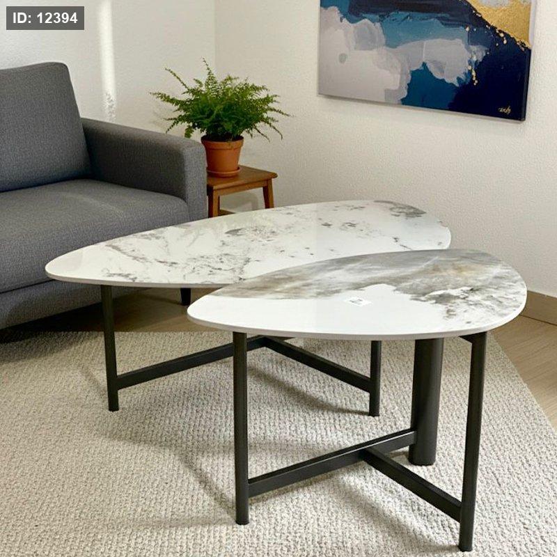 طقم اسكملات/2 بيضاوي خشب ماربل ابيض ارجل حديد اسود K61/3 =ك4