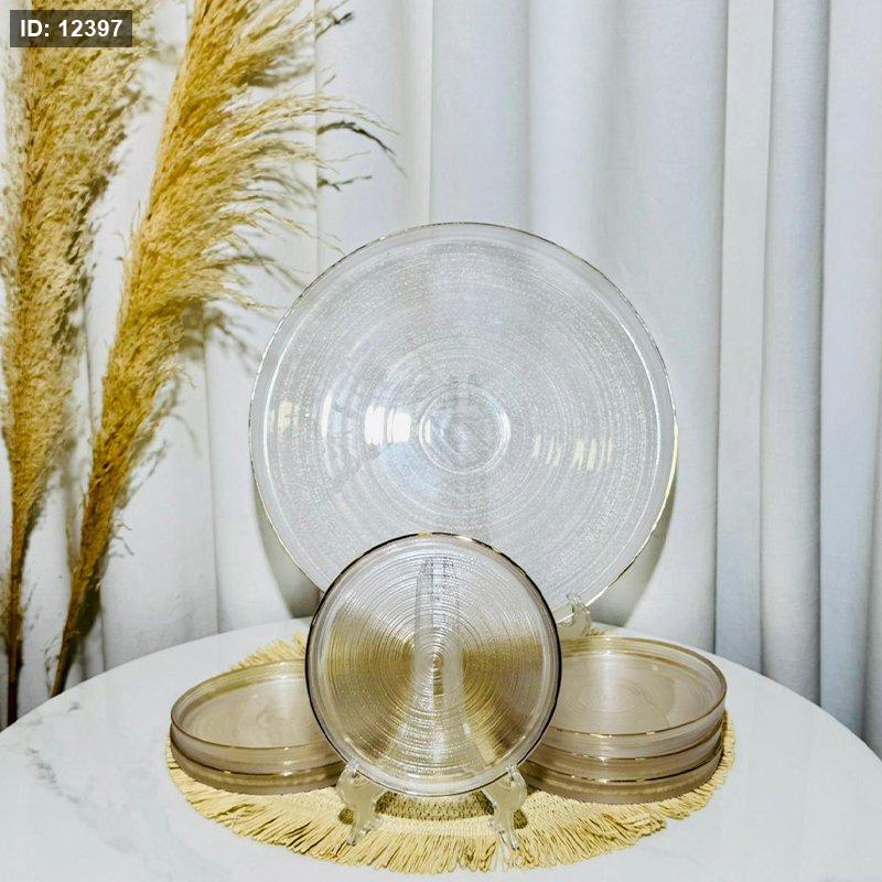 طقم/7 جاط 32سم +6صحون 15سم زجاج محزز اطار ذهبي K54/37 =ك4