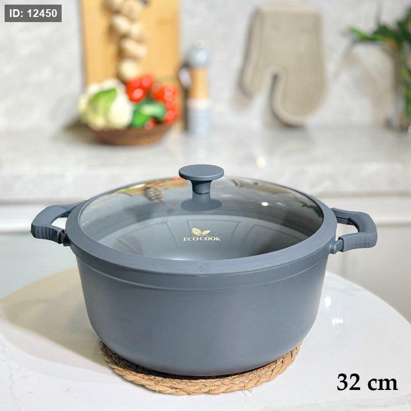 طنجرة جرانيت 32سم سكب سكني GRAY غطا زجاج اطار ويدين جلدة ++B