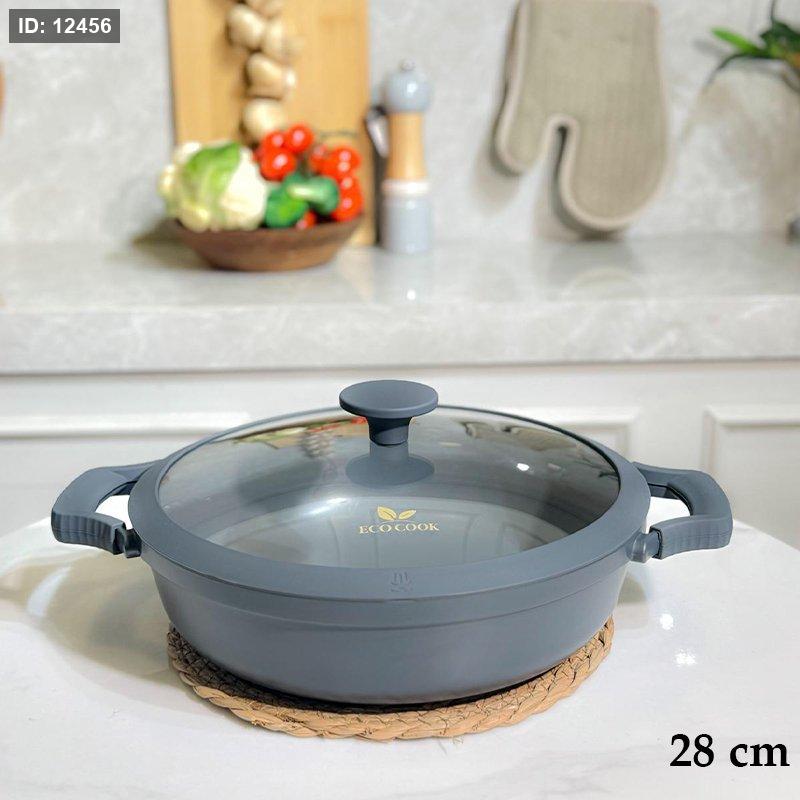 مقلى جرانيت بيدين 28سم سكب سكني GRAY غطا زجاج اطار ويدين جلدة ++B