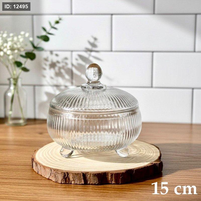 مضيفة مدور زجاج سادة محزز 15سم برجل EL120/3=ك5