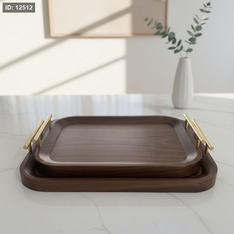 طقم/2 صينية خشب بني غامق مقبض ذهبي EL6/5 =ك5