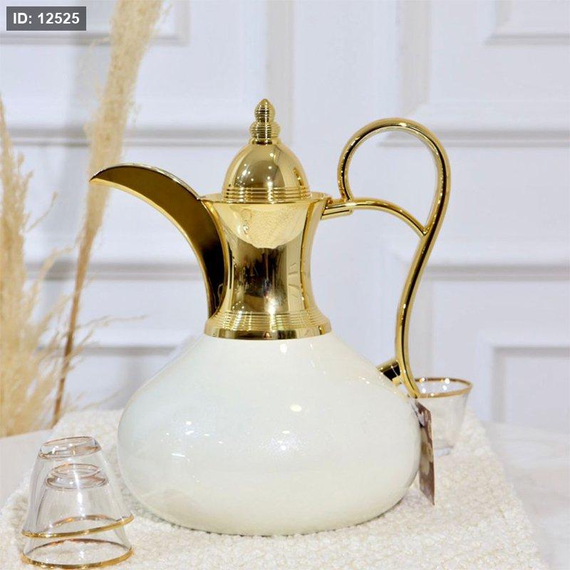 تيرموس بطة 1لتر ستانلس ابيض غطا بلاستك ذهبي كبس SS-QUEEN-10C +خ.ت