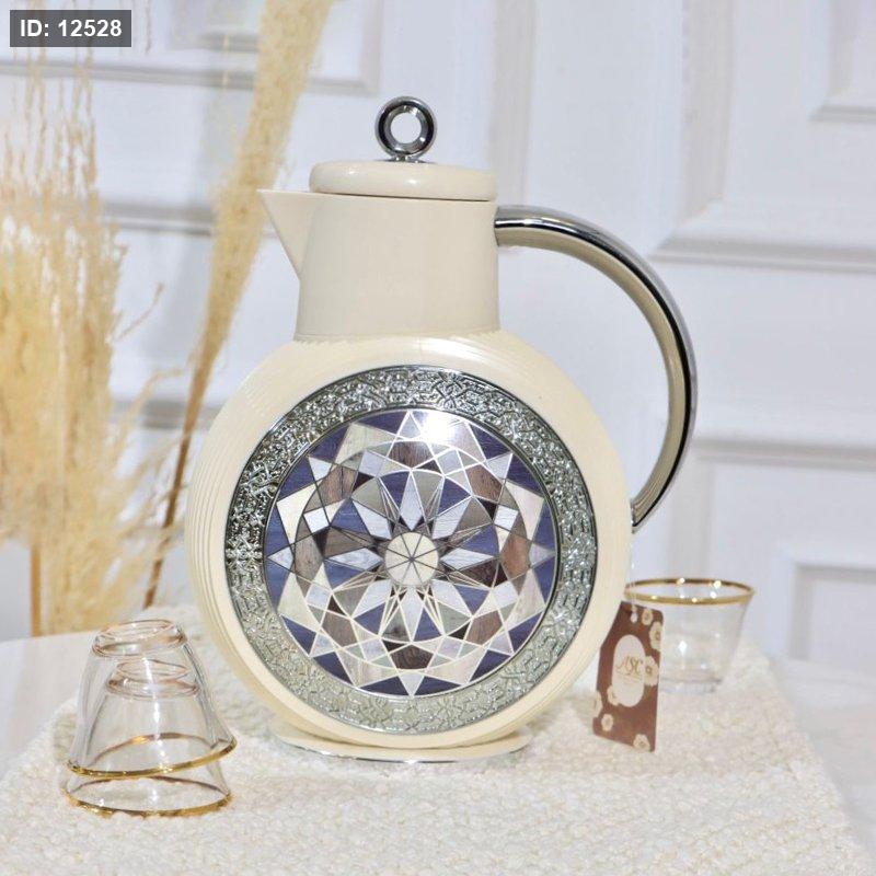 تيرموس مدور0.9لتر بلاستك بيج مزخرف اطار ويد وغطاحلقة كبس فضي UFO-G90PRO +خ.ت