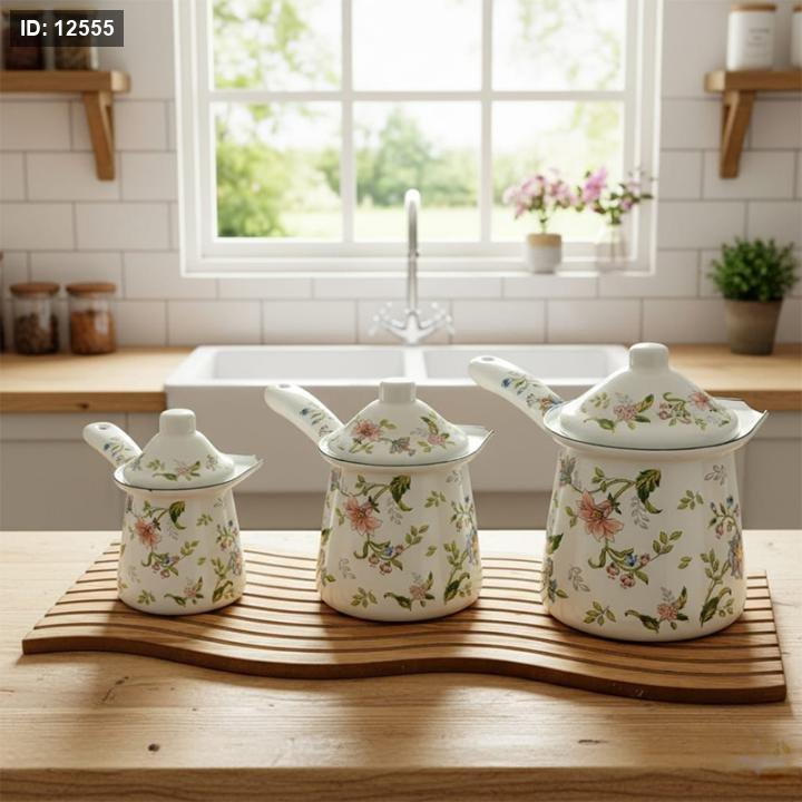 طقم/3 بكارج قهوة 8/10/11سم زينكو بيج مرسم ورد اخضر EL135/5 =ك6